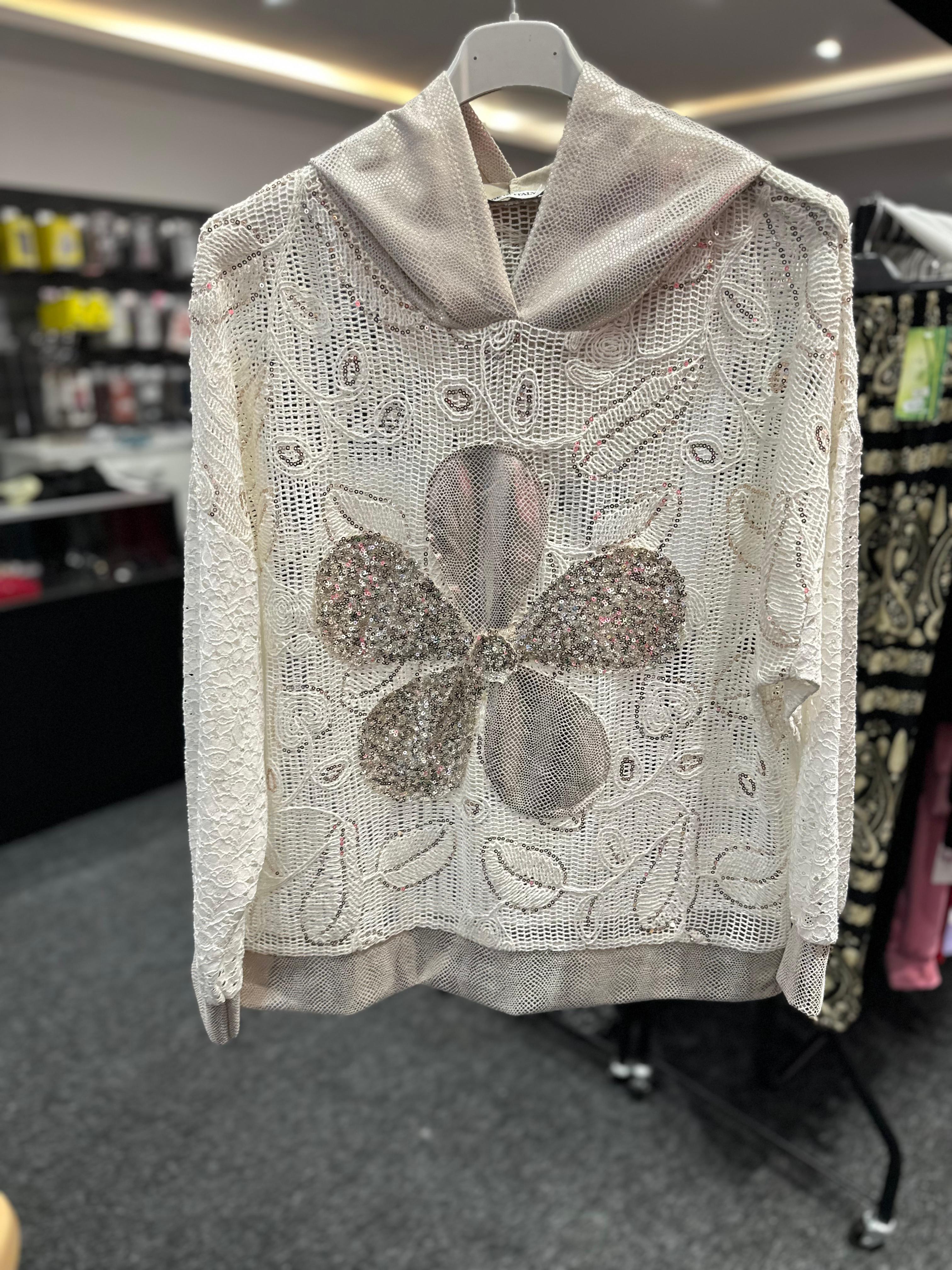Lightweight and breezy, with a detailed floral cutwork yoke and flowy silhouette.